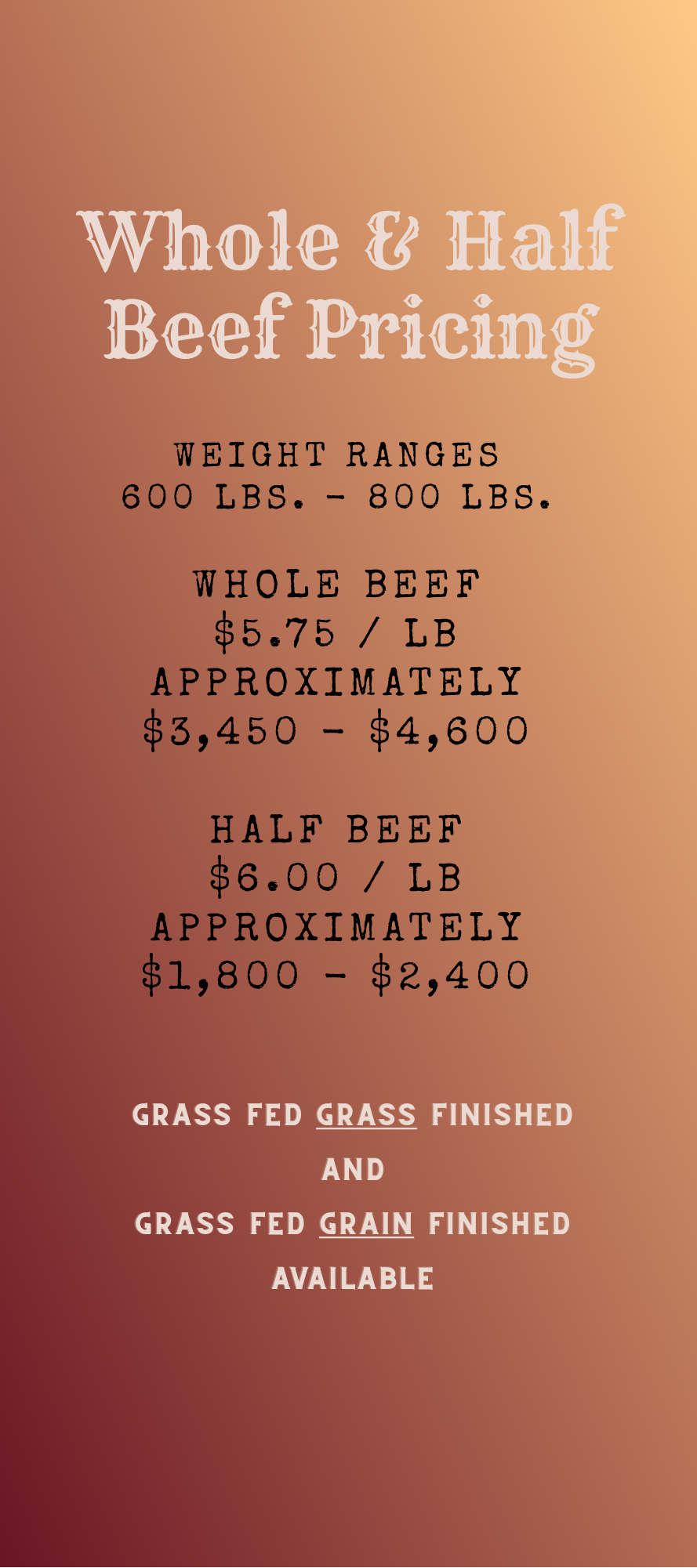Our Weekly Specials highlight limited-time deals, seasonal offerings, and featured cuts available in the shop. Specials change regularly and are available while supplies last.